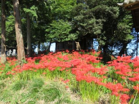 日中は残暑が厳しいながら、朝夕は涼しく、秋本番となりつつあります。木間ケ瀬小学校の近所の「駒形神社」は彼岸花が満開です。