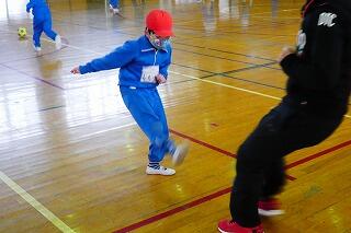 ゆりの木学級は体育館でボールゲームを行いました。先生方がキーパーになり、何点入れられるか数えています。