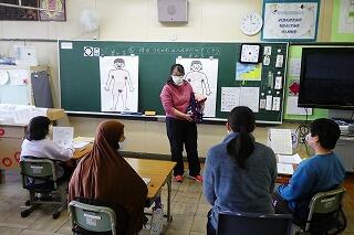 大きな声が出せない中で、楽しんでできる工夫された授業でした!!