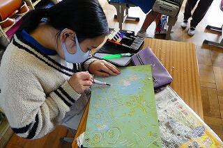 複数の色を組み合わせ、完成した作品を楽しんでいました。