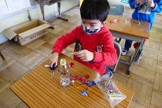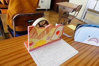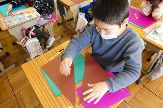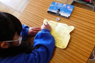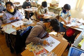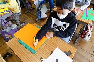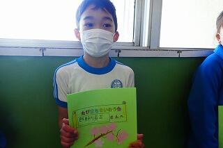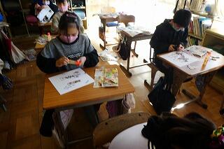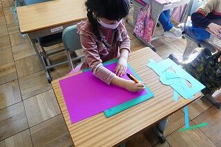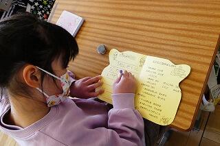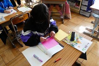 1年生は園児の皆さんに渡すメッセージカードを作っていました。