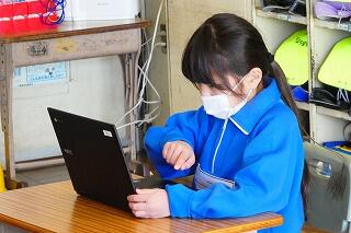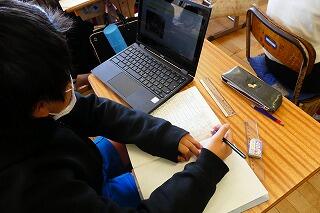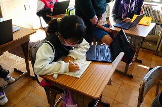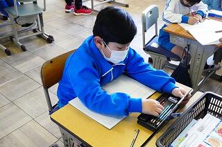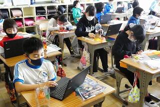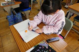 クロームブックを活用しながら、デザインを考えている児童もいました。どんな作品に仕上がるのでしょう。