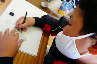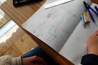 初めは苦戦していましたが、途中コンパスを使うとうまく書けることに気がついたようです。