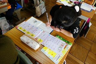 自分で選んだ県について特産品や方言などを、ノートにまとめていました。