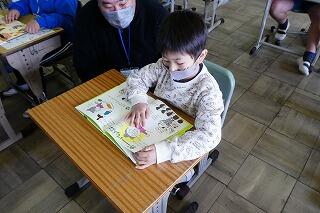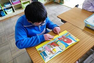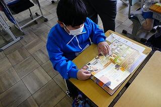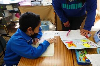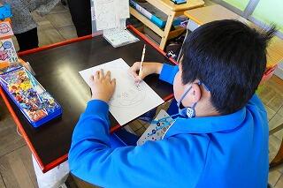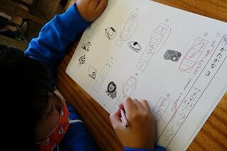 ゆりの木2組は国語で文作りをしました。絵を見ながら「~は、~する。」といったような文を作成しました。