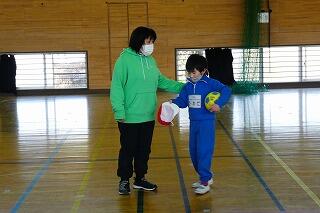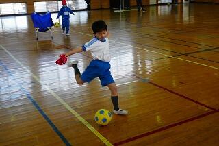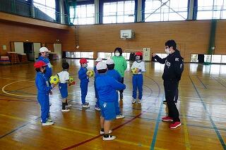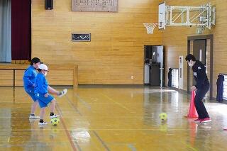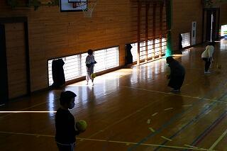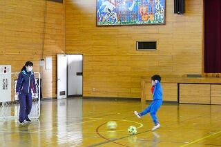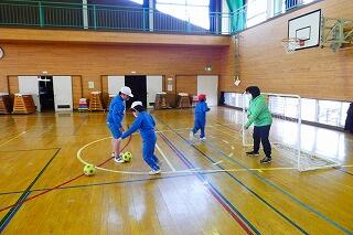 ゆりの木学級は体育館でボールゲームを行いました。先生方がキーパーになり、何点入れられるか数えています。