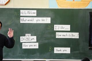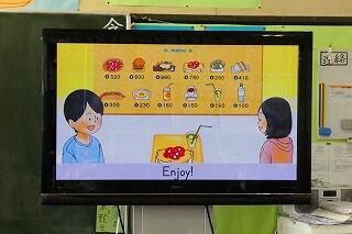 5年生の外国語の学習の様子です。「What would you like?」の問いかけの会話について練習しました。テレビの音声を聞いて発音を練習しています。