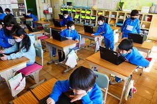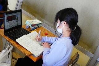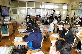 6年生は中学校の体験入学をオンラインで行いました。例年は中学校に行って体験をしましたが、感染症予防のために、今年度はこのような形で初めての試みです。