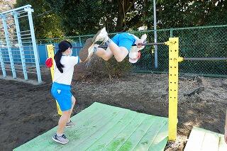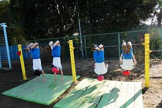 逆上がりができるメンバーは、いろいろな技にチャレンジしていました。
