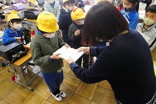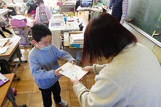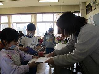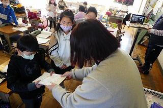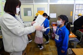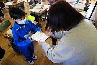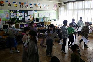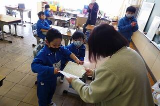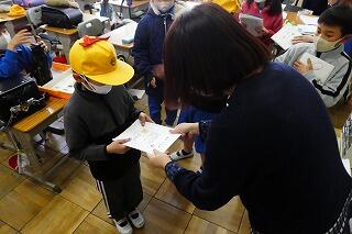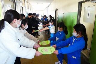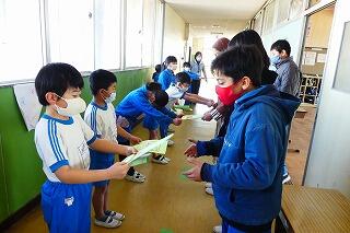 2年生が6年生に「卒業を祝う会」の招待状を渡しに行きました。