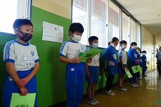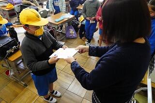 例年よりも距離を開けての受け渡しになりましたが、2年生も6年生も嬉しそう!