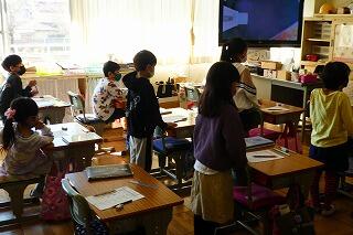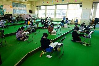 大きな声が出せない中で、楽しんでできる工夫された授業でした!!