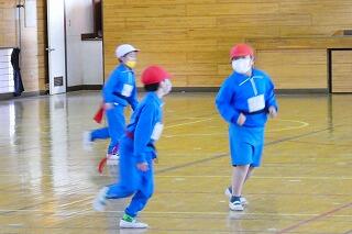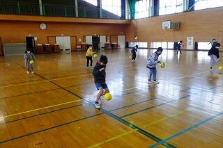 ゆりの木学級の体育の様子です。サッカーの学習をする前に、しっぽとりをして体をあたためました。