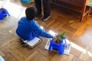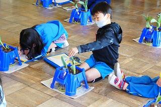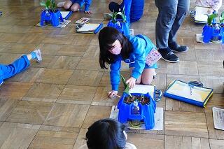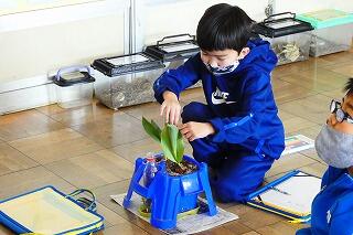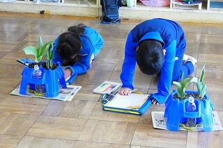 1年生は生活科でチューリップを育てています。今日は育っている様子を観察しました。