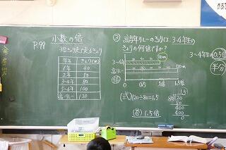 4年生の算数の様子です。「小数の倍」について学習しました。