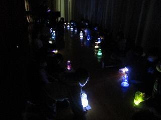 4年生の「ゆめいろランプ」が完成しました。みんなで一斉に点灯している様子です。とてもきれいですね。