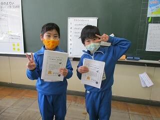 今日の表彰の児童です。家庭学習が終わり、新たにノートを配付した数が300冊を超えました。どの児童も家庭学習に取り組んでいることがよくわかります。今日はゆりの木学級と2年生の児童を表彰しました。