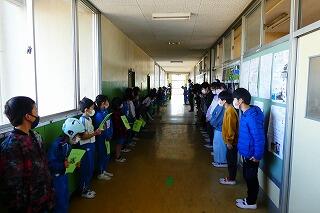 集会では教務主任と6年生の担任の先生からのお話がありました。