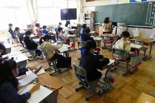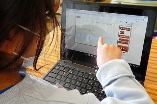 3年生はクロームブックを使って「eライブラリ」に取り組んでいました。