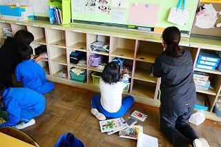ゆりの木の「読書タイム」です。自分のお気に入りの絵本を静かに読みました。