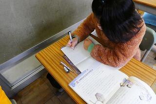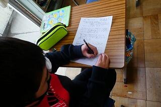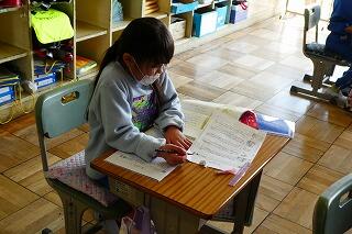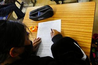 おうちの人からの手紙を真剣に見ながら書き進めていました。