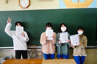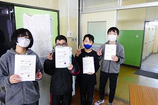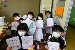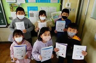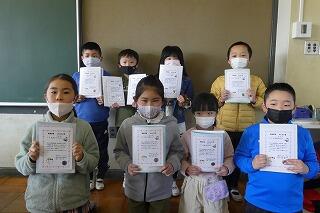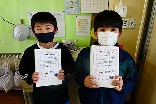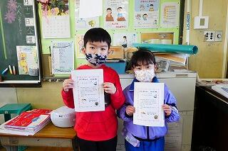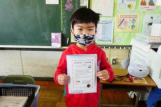エネルギーのポスターの入賞と、欠席日数が6年間で5日以内の子に贈られる精勤賞です。
