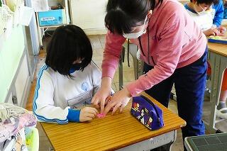 さらに5年生は家庭科でエプロン作りも行っていました。