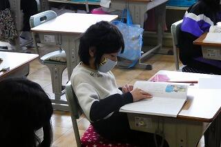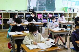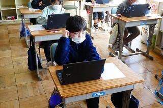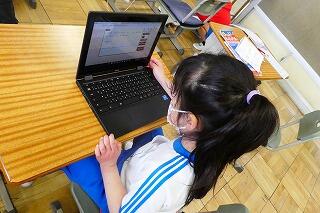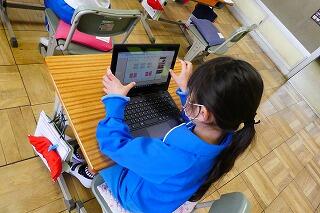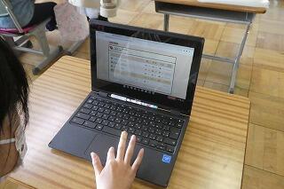 3年生はクロームブックを使って「eライブラリ」に取り組んでいました。