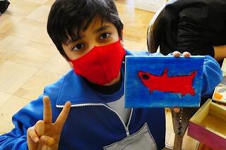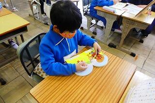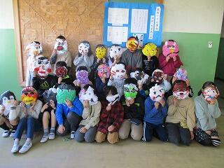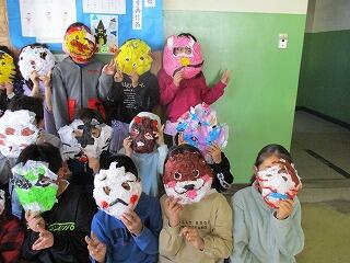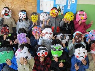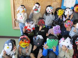 「かぶってへんしん」という内容で、みんなでお面を作りました。
