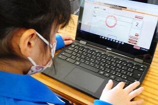 担任の先生が一人一人に声をかけて渡していくので、待っている間はクロームブックを使った自主学習になります。