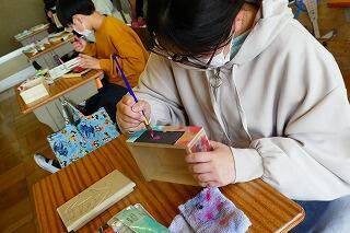 6年生は昨日に引き続き、卒業制作のオルゴールを作成していました。