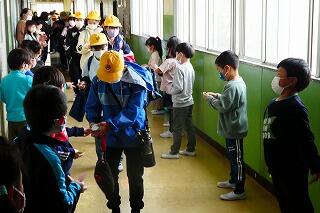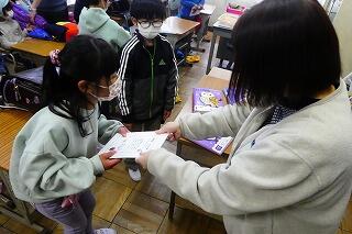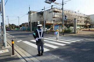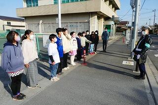 木間ケ瀬小学校の子どもたちのために、毎日旗を振ってくださる交通補導員さんに6年生が挨拶に向かいました。
