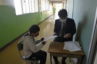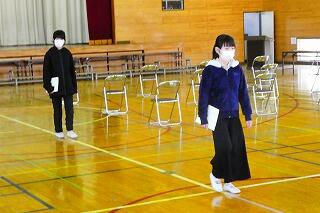 花壇の草花が優しく風に揺れる今日、令和3年度卒業証書授与式の予行が行われました。