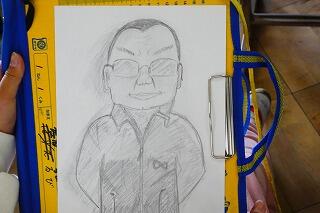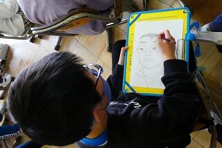 4年生は担任の先生の顔を見て、肖像画を描いていました。