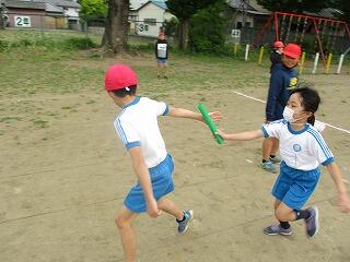 4年生の体育の時間は、リレーをしていました。試行錯誤を繰り返し、バトンパスがだんだんスムーズにできるようになってきていました。
