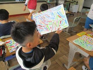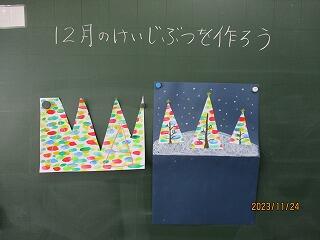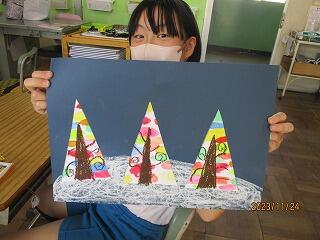 いろんな色に塗ったものを切り取って、クリスマスツリーに仕上げていました。