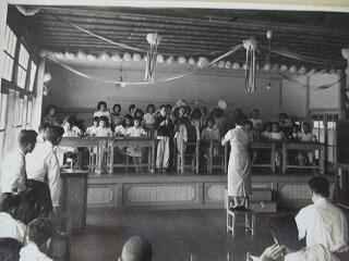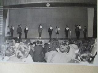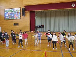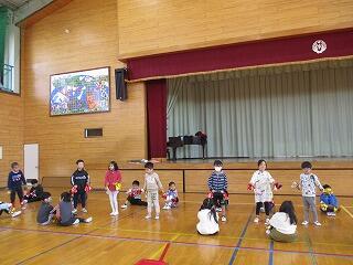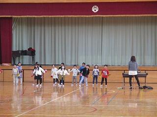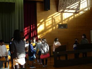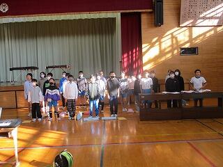 1年生では、150周年記念に向けて体育館で歌と踊りの練習をしました。