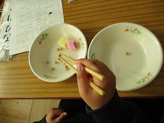 お箸名人になれるよう講師の話をしっかりと聞いて練習をたくさんしました。
