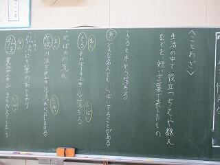 ことわざとその意味について全体で確認しながらノートに書いていました。