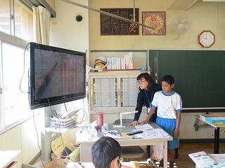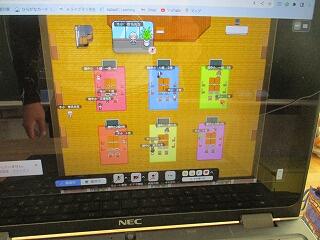 みんなの前で自分の考えをテレビに映し出し、発表していました。