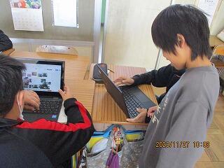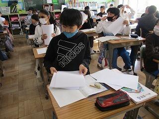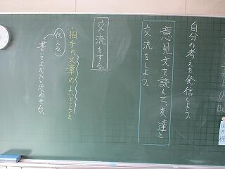 6年生の国語の時間は、お隣の小学校と意見文発表の交流を行いました。