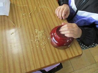 5年生は総合の時間。育てていた稲の「実」を稲穂から一粒一粒集めていました。