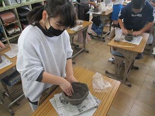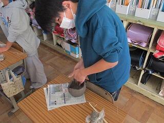 6年生では、野田陶芸の方を講師としてお招きし、陶芸教室を行いました。
