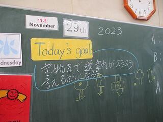 5年生の外国語では、今学習しているレッスンのゴールとして、実際に宝を探す活動をしました。