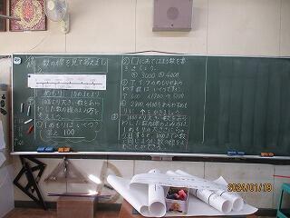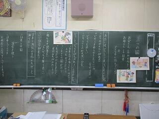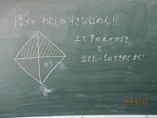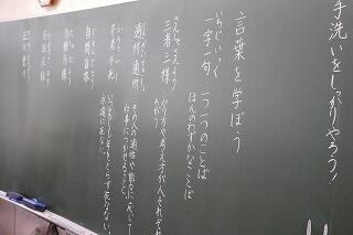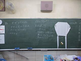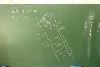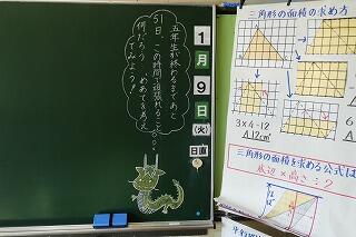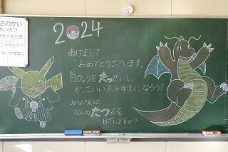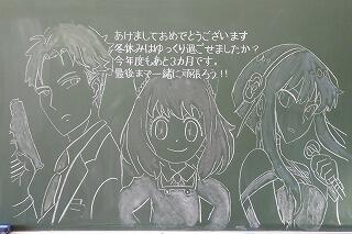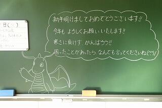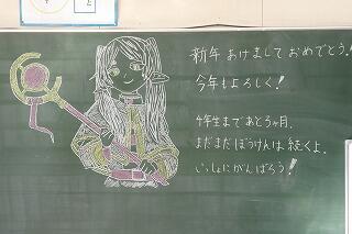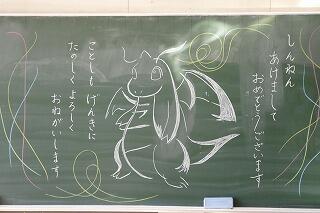 今日は年明け最初の日ということで、担任の先生たちが黒板に絵やメッセージを書いていました。