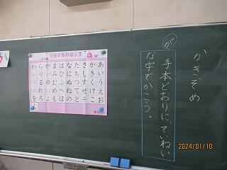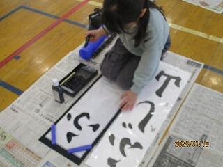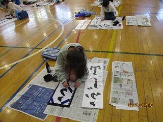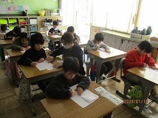 1・2年生は硬筆、3~6年生は毛筆で書初めをしました。