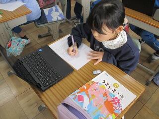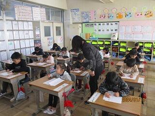 2年生もいつも以上にゆっくり丁寧に書こうと意識して、姿勢が前のめりになるほど集中して頑張っていました。