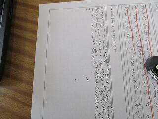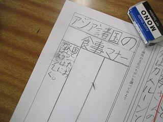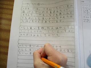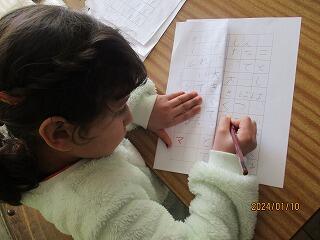 1行1行、見本の紙を折りながら、書く文字を間違えないように工夫して書いていました。