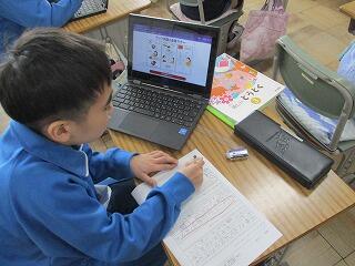 ノートに書いたり、eライブラリーに取り組んだり各自黙々と学習していました。