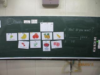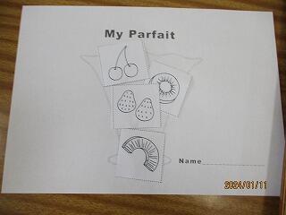 2年生の外国語活動の時間。自分の好きなフルーツを選んでパフェを作る活動を英語で行いました。